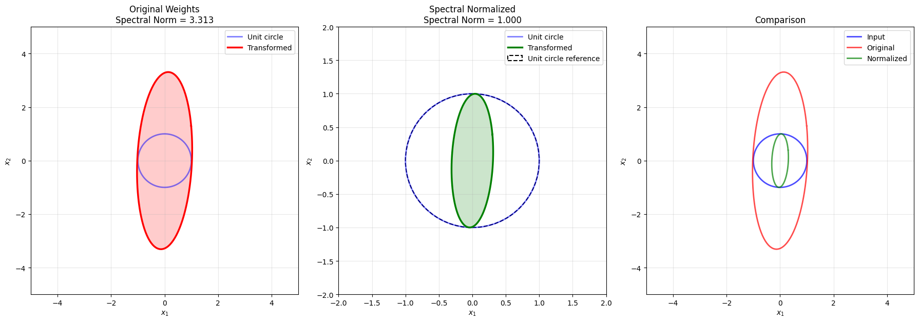 ax1.plot(unit_circle_x, unit_circle_y, 'r-', linewidth=2.5, label='Unit Circle')