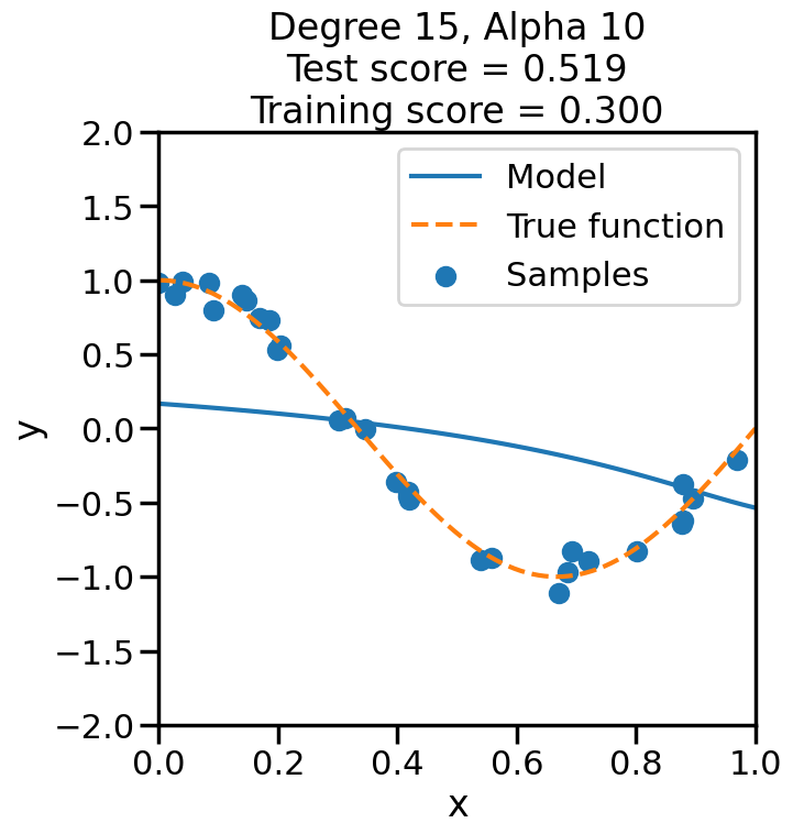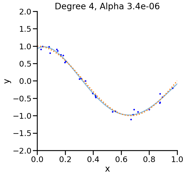 Let’s start by returning to our Polynomial example, and this time focus on finding the best combination of degree and penalty weight for a linear model.