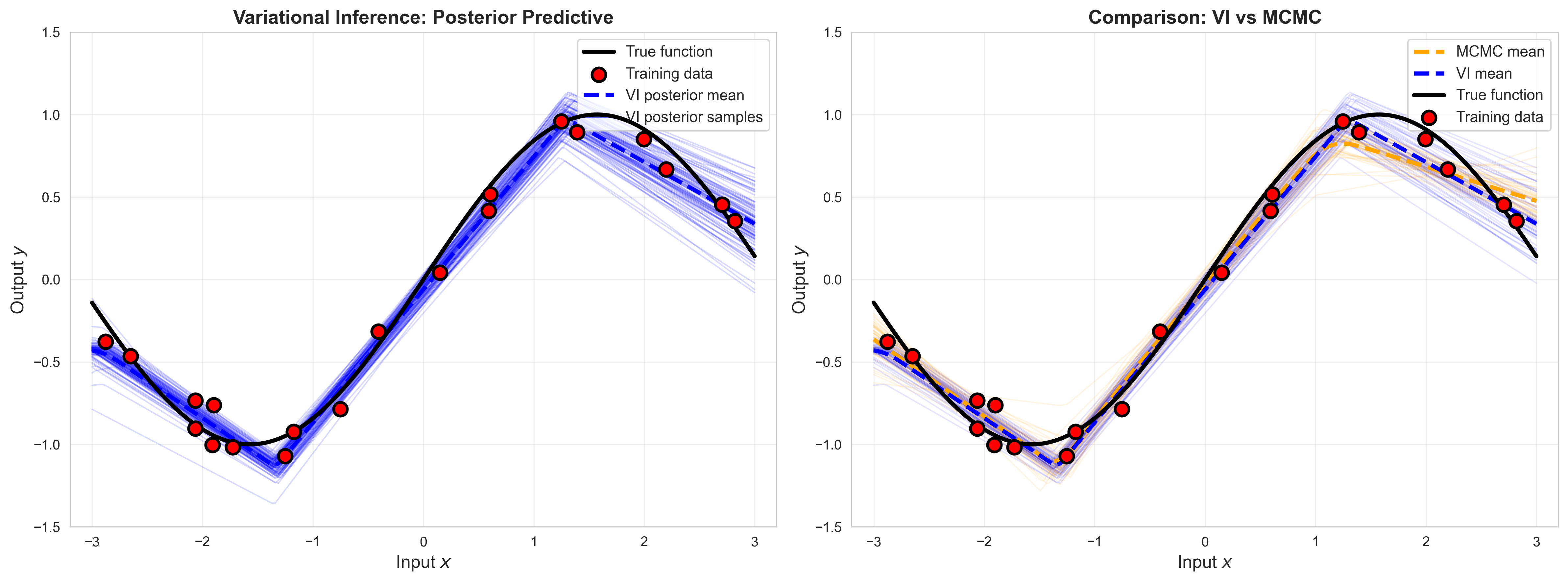 ax.plot([], [], 'blue', alpha=0.6, linewidth=2, label='VI posterior samples')