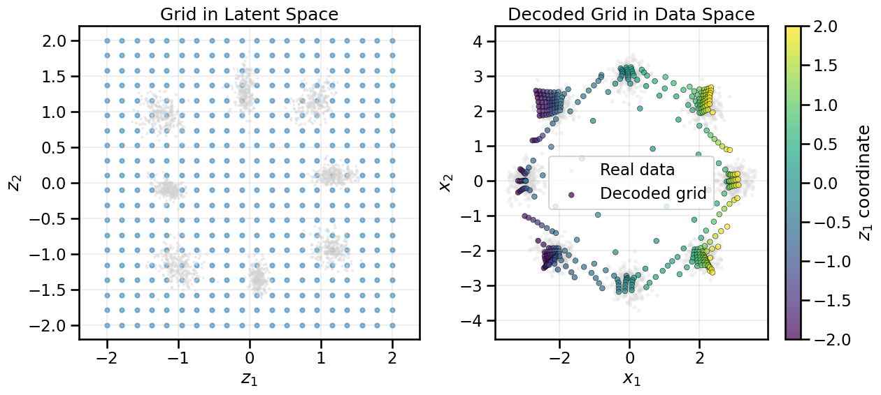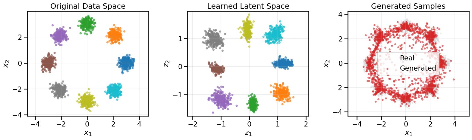 X_ring, epochs=500, batch_size=256, lr=1e-3, beta=1.0, hidden_dim=128, z_dim=2, print_every=50