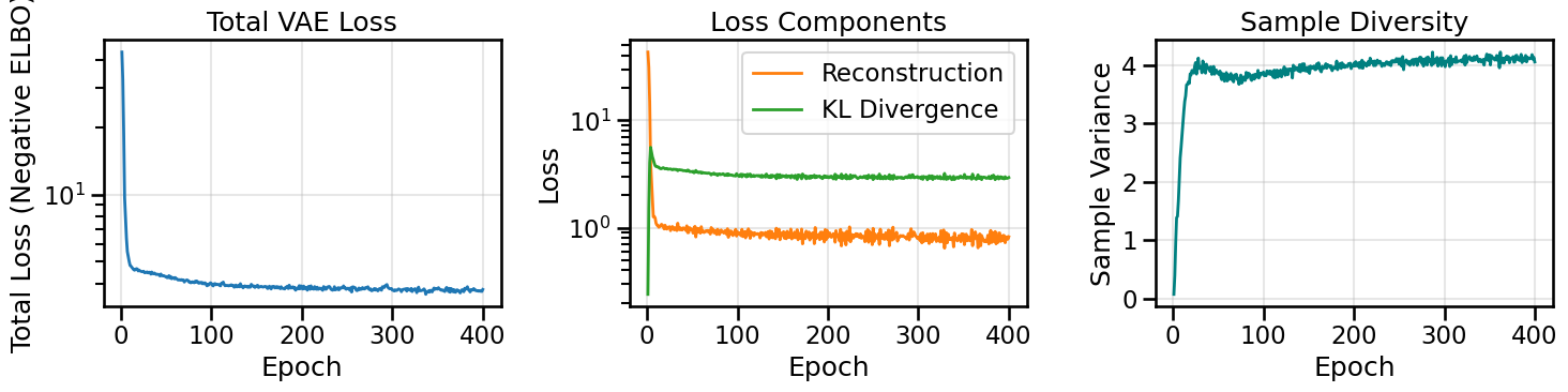 f"Recon: {history.recon_loss[-1]:.3f} | KL: {history.kl_loss[-1]:.3f} | Div: {div:.3f}")